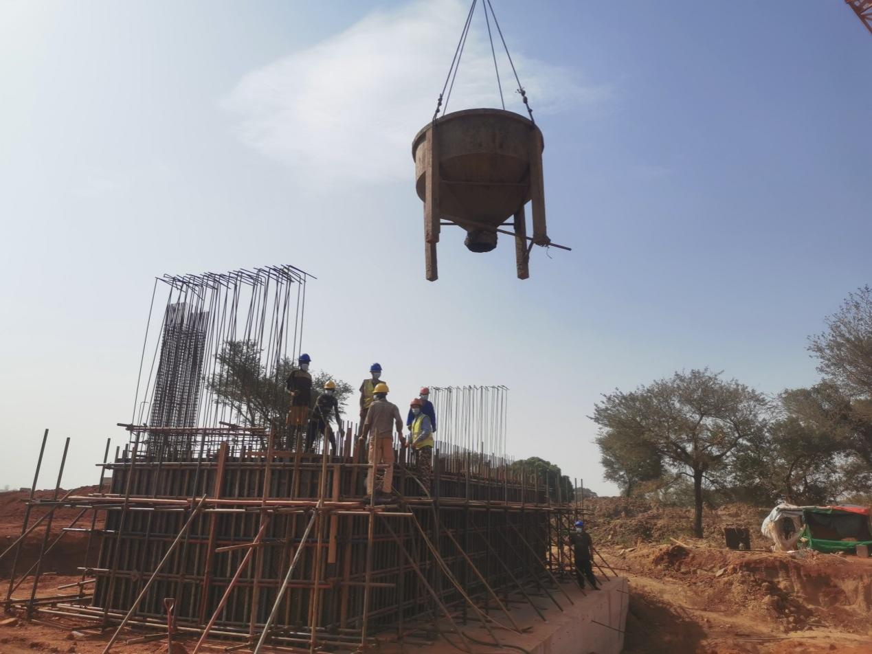 Concrete is poured into an abutment of the Jur River bridge in South Sudan. (Photo courtesy of CCCC Highway Consultants Co., Ltd.)