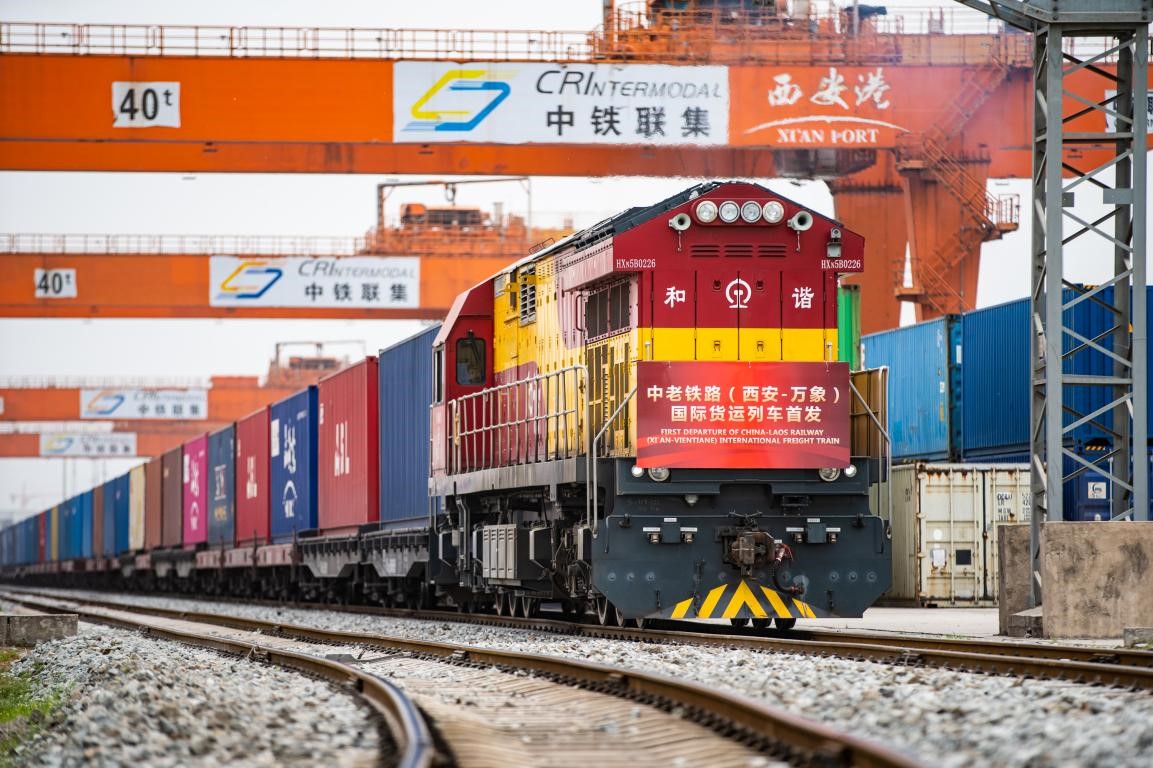 Xi'an, northwest China's Shaanxi province launches first freight train to Vientiane traveling via the China-Laos Railway, April 22, 2022. (People's Daily Online/Liu Xiang)