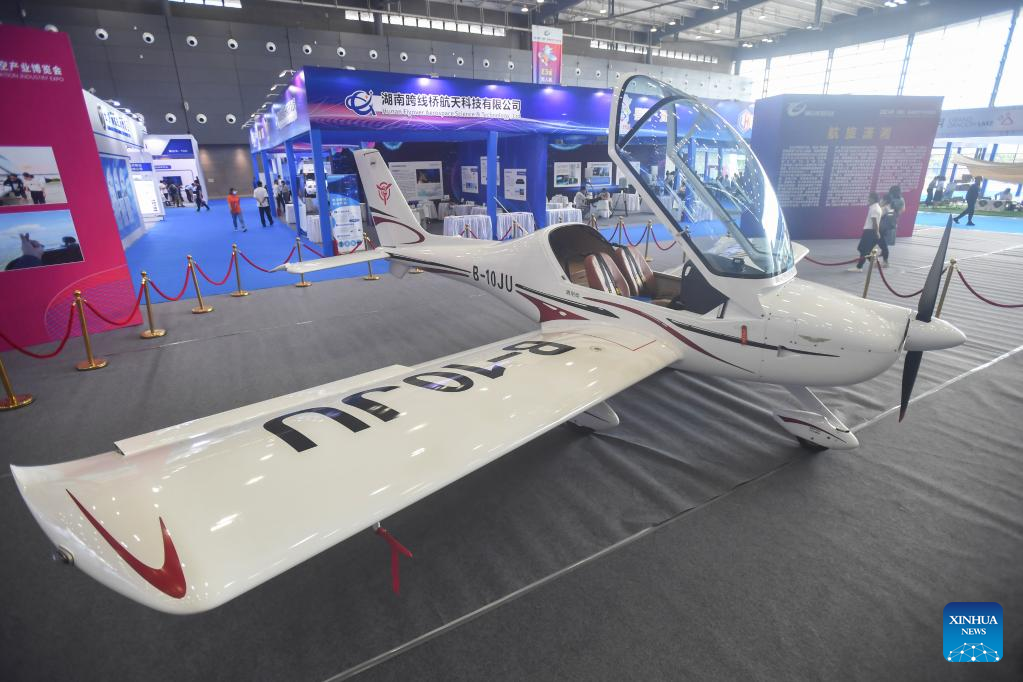 A light sport aircraft is displayed during the 2022 Hunan (International) General Aviation Industry Expo at the Changsha International Convention and Exhibition Center in Changsha, central China's Hunan Province, Sept. 1, 2022. The 2022 Hunan (International) General Aviation Industry Expo opened here on Thursday. The expo comprises a static exhibition at the Changsha International Convention and Exhibition Center in Changsha and an air show at the Lusong Airport of Zhuzhou City, both in central China's Hunan Province. (Xinhua/Chen Zeguo)