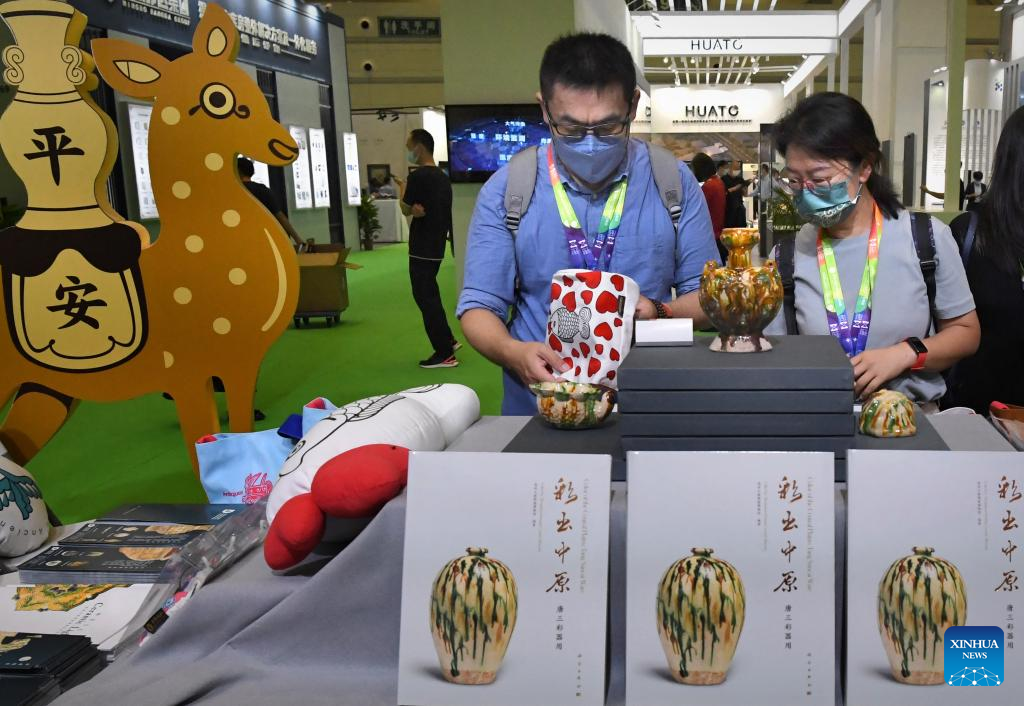 Visitors look at exhibits displayed at the 9th Chinese Museums and Relevant Products and Technologies Exposition (MPT-Expo) in Zhengzhou, capital of central China's Henan Province, Sept. 1, 2022. The 9th MPT-Expo opened here Thursday, where 437 museums across the country showcased their latest development and achievements in related areas. (Xinhua/Li An)