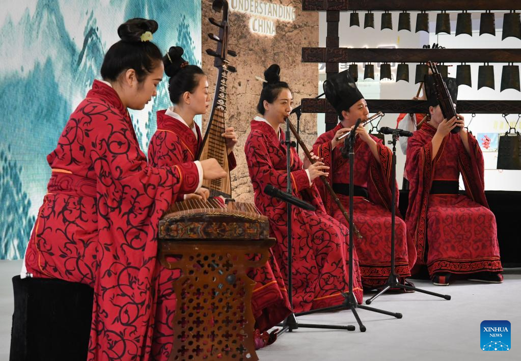 Artists perform at the 9th Chinese Museums and Relevant Products and Technologies Exposition (MPT-Expo) in Zhengzhou, capital of central China's Henan Province, Sept. 1, 2022. The 9th MPT-Expo opened here Thursday, where 437 museums across the country showcased their latest development and achievements in related areas. (Xinhua/Li An)