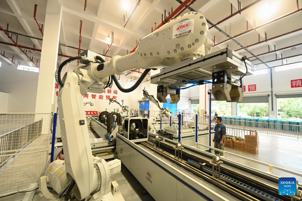 A technician checks equipment production at a workshop for the construction of the Fuzhou-Xiamen high-speed railway, in southeast China's Fujian Province, Sept. 1, 2022. With a designed speed of 350 km per hour, the 277-km Fuzhou-Xiamen high-speed railway is expected to slash the travel time from the province's capital Fuzhou to the tourist attraction Xiamen within one hour. (Xinhua/Lin Shanchuan)