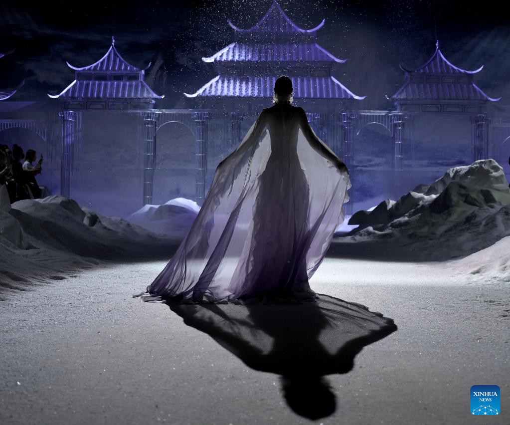 Models present creations by designer Xiong Ying during the opening fashion show of China Fashion Week S/S 2023 in Beijing, capital of China, Sept. 4, 2022. The fashion week kicked off here on Sunday. (Xinhua/Chen Jianli)