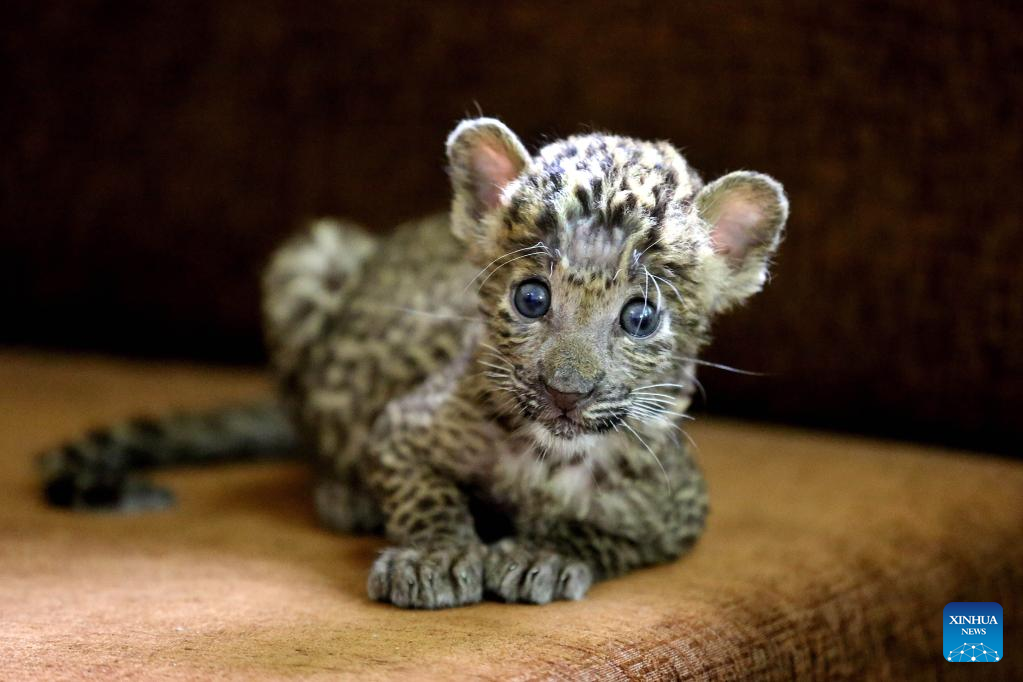 Photo taken on Sept. 4, 2022 shows a one-month-old leopard cub, rescued in the jungle, at Kamla Nehru Zoological Park in Indore, 200 Km from Bhopal, capital of India's Madhya Pradesh state. (Str/Xinhua)