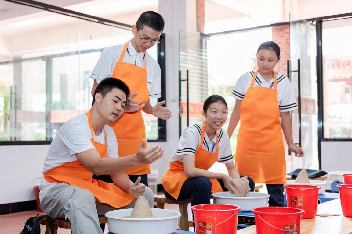 Students experience porcelain making in Dehua, Quanzhou, southeast China's Fujian province during a summer camp, Aug. 19, 2020. (People's Daily Online/Xu Huasen)