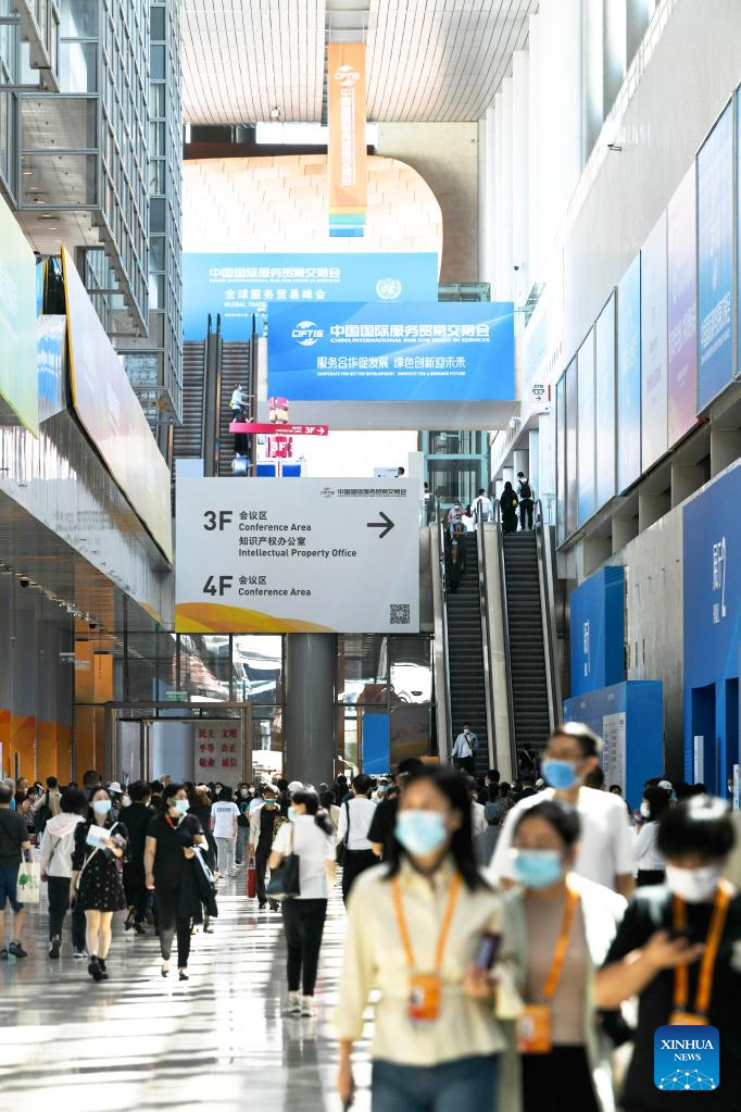 People visit the 2022 China International Fair for Trade in Services (CIFTIS) at the China National Convention Center in Beijing, capital of China, Sept. 5, 2022.