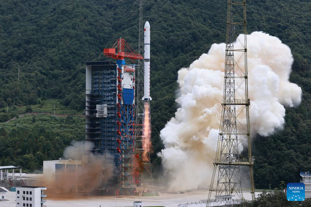 A Long March-2D carrier rocket carrying a remote sensing satellite group blasts off from the Xichang Satellite Launch Center in southwest China's Sichuan Province, Sept. 6, 2022. The fifth batch of the Yaogan-35 family, the satellites were lifted at 12:19 p.m. Beijing Time (0419 GMT) and entered the preset orbit. (Photo by Zhang Mengyu/Xinhua)