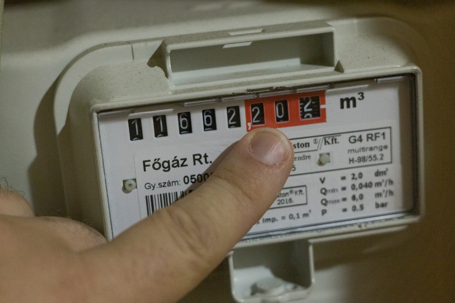 A man shows gas consumption on a meter in downtown Budapest, Hungary, on July 13, 2022. (Photo by Attila Volgyi/Xinhua)