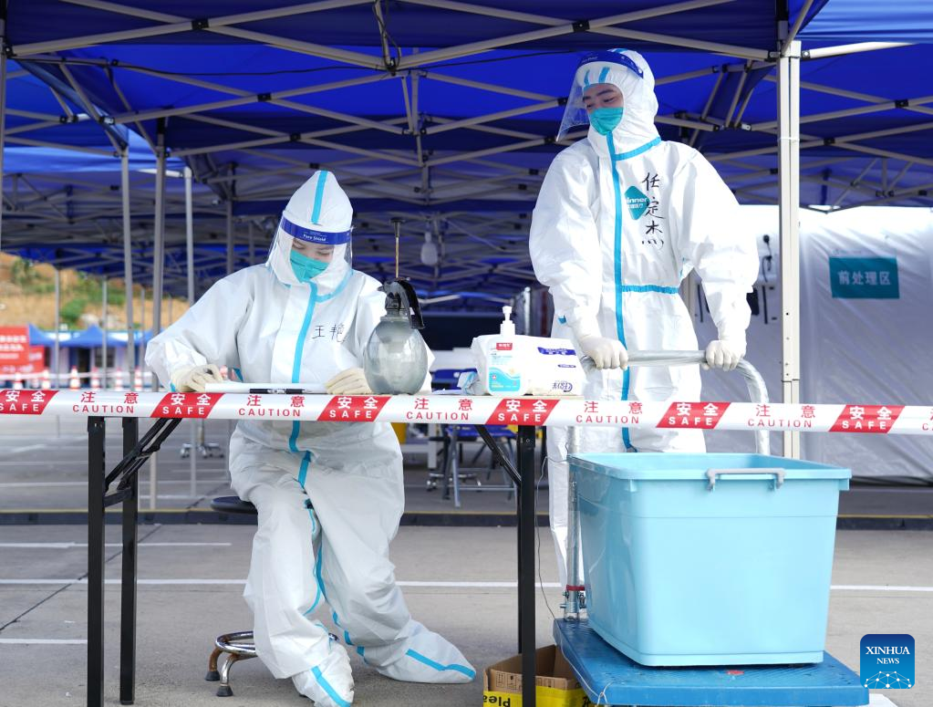 The city of Chengdu has built five air-inflated laboratories for COVID-19 nucleic acid testing, providing a daily maximum testing capacity of 250,000 tubes. (Xinhua/Liu Qiong)
