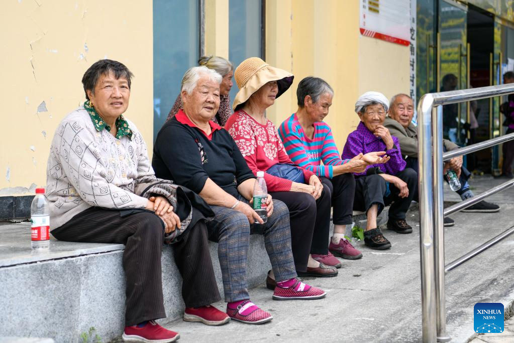 Senior residents rest at a quake relief shelter in Wajiao Village of Wanggangping Township in Shimian County of Ya'an City, southwest China's Sichuan Province, Sept. 6, 2022.