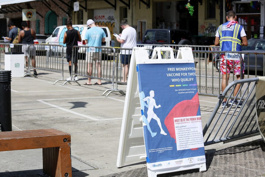 People queue up for monkeypox vaccination in New Orleans, the United States, Aug. 13, 2022. (Photo by Lan Wei/Xinhua)