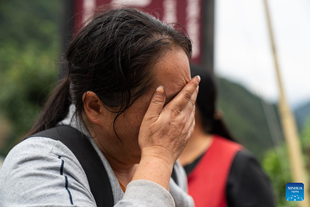 A woman is seen weeping in Xingfu Village of Shimian County, southwest China's Sichuan Province, Sept. 7, 2022. A 6.8-magnitude earthquake jolted southwest China's Sichuan Province on Monday, and Shimian County in Ya'an were one of the hardest-hit areas. The quake damaged houses, roads, water conservancy facilities, hydropower stations, and telecommunications.