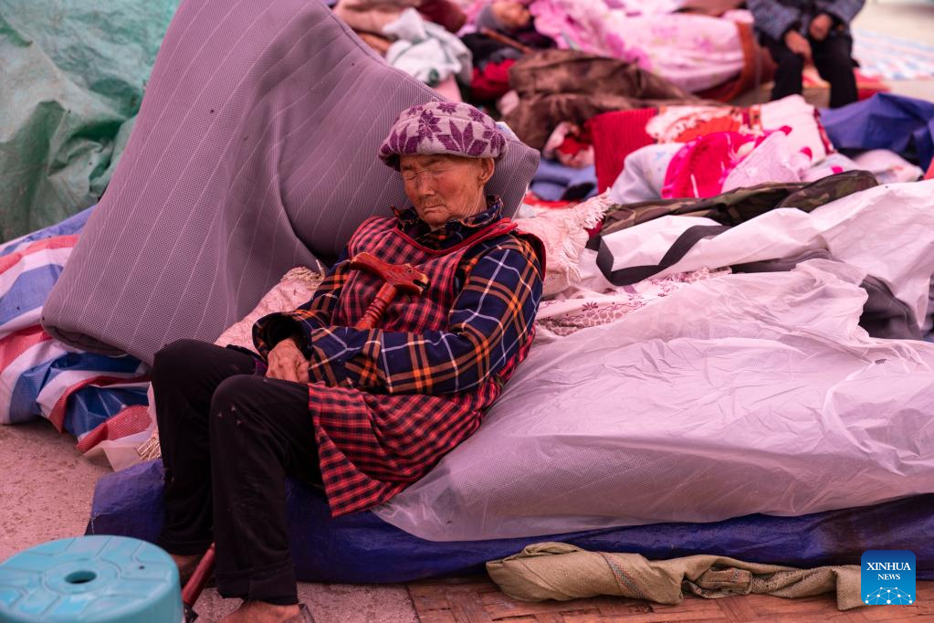 A villager rests in Xingfu Village of Shimian County, southwest China's Sichuan Province, Sept. 7, 2022. A 6.8-magnitude earthquake jolted southwest China's Sichuan Province on Monday, and Shimian County in Ya'an were one of the hardest-hit areas. The quake damaged houses, roads, water conservancy facilities, hydropower stations, and telecommunications.