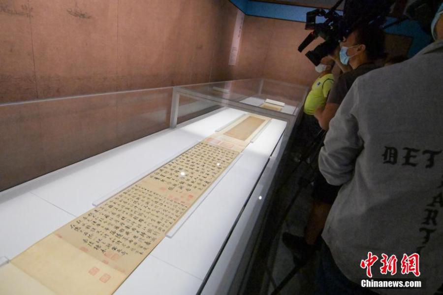 Photo taken on Sept. 7, 2022 shows a Chinese calligraphy of the Southern Song Dynasty (1127-1279) on display at Hong Kong Palace Museum. (Photo: China News Service/Chen Yongnuo)