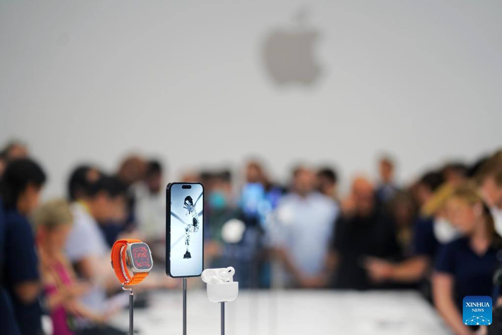 New Apple products are introduced during a product launch event in San Francisco Bay Area, California, the United States, Sept. 7, 2022. Apple on Wednesday announced new products during a product launch event held in the Steve Jobs Theater. (Xinhua)