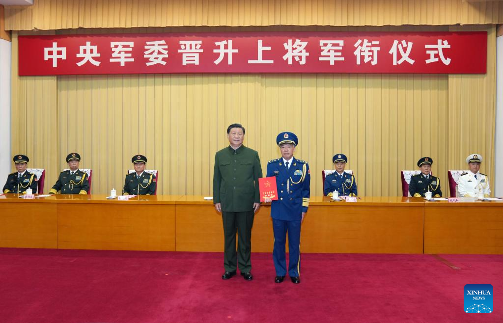BEIJING, Sept. 8 (Xinhua) -- Xi Jinping, chairman of the Central Military Commission (CMC), on Thursday presented a certificate of order at a ceremony to promote Wang Qiang, commander of the Northern Theater Command of the People's Liberation Army, to the rank of general.