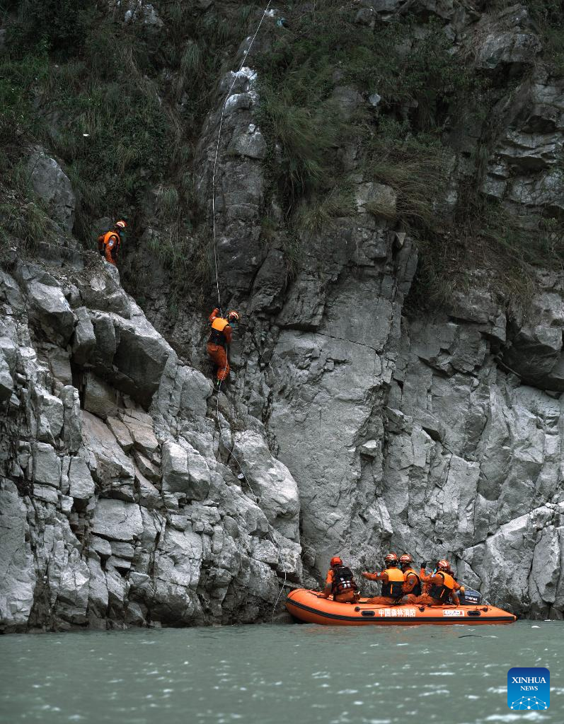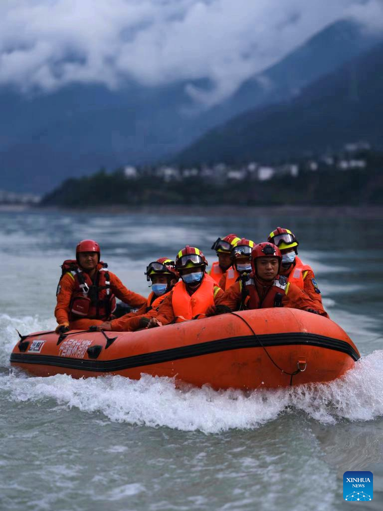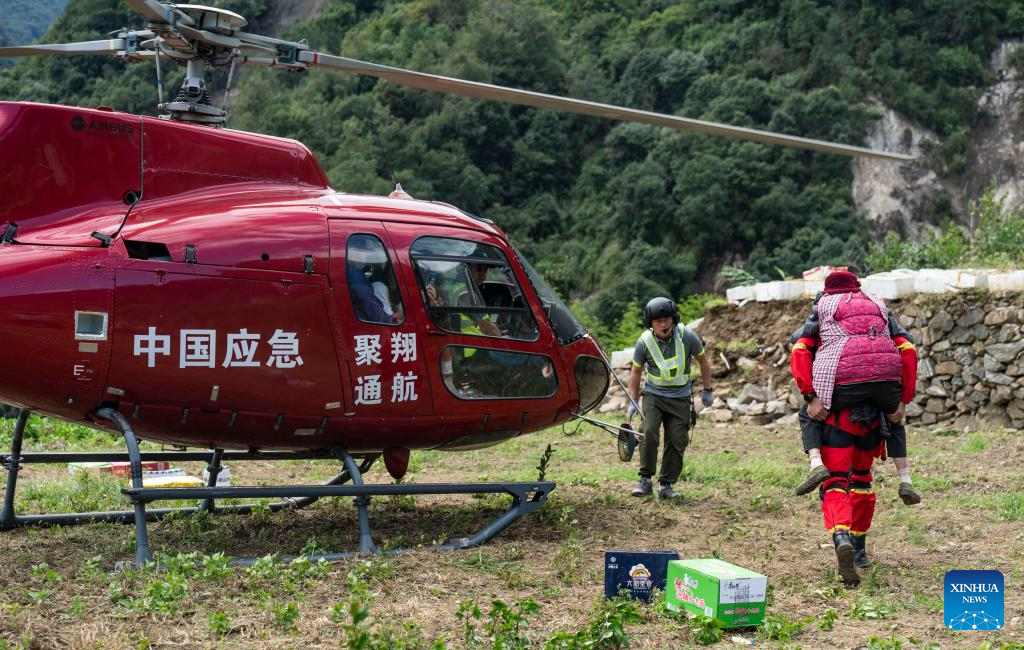 Rescue work continues in Detuo Town of Luding County, southwest China's Sichuan Province, Sept. 9, 2022. (Photo by Cheng Xueli/Xinhua)
