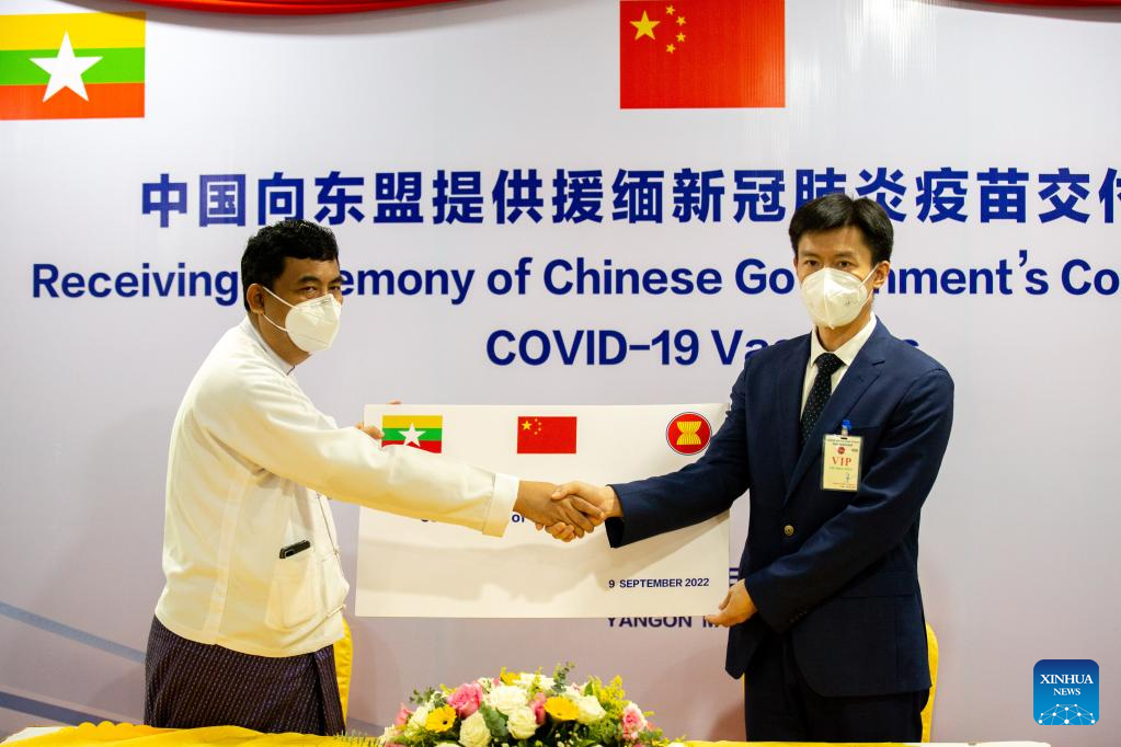 YANGON, Sept. 10 (Xinhua) -- A handover ceremony of 2 million doses of COVID-19 vaccines donated by China was held Friday at Myanmar's Yangon International Airport.