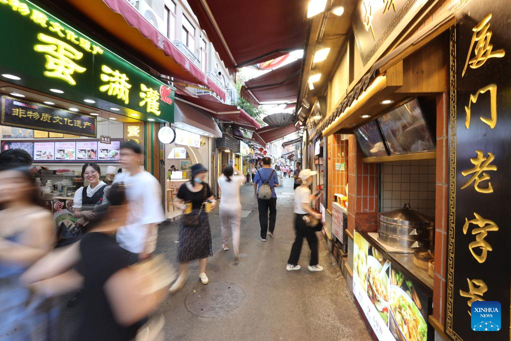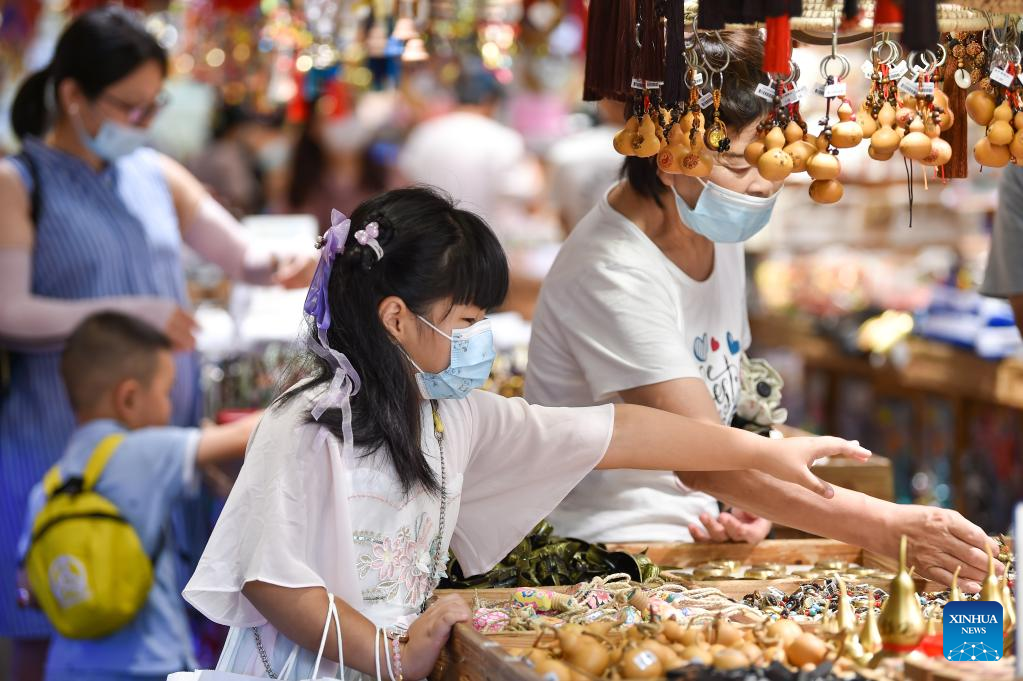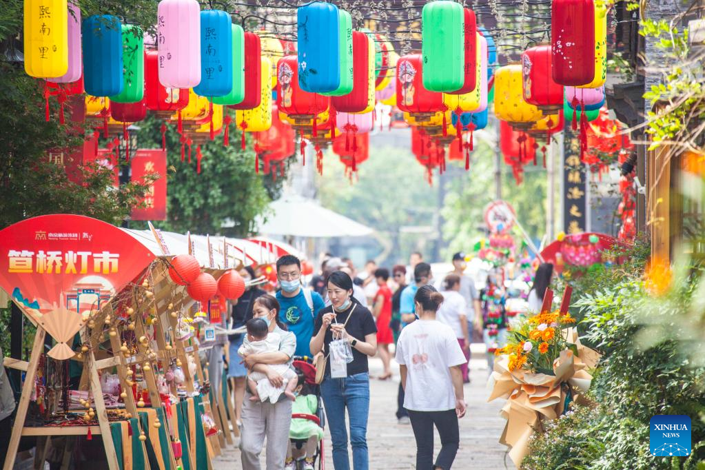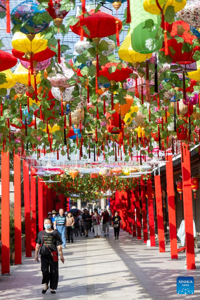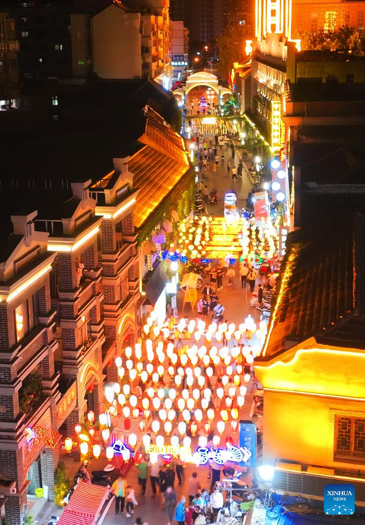 People visit the Nanqiang Street during the Mid-Autumn Festival holiday in Kunming, southwest China's Yunnan Province, Sept. 10, 2022.