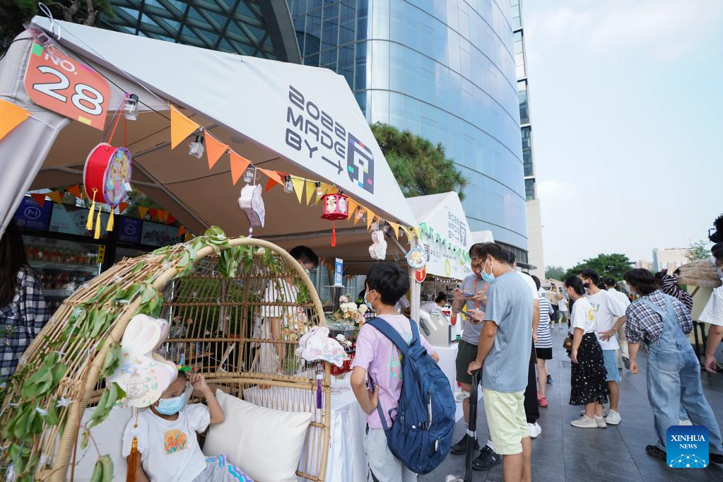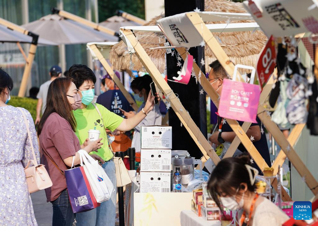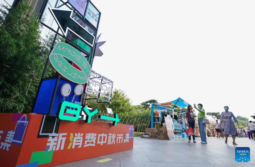 People shop in a fair during the Mid-Autumn Festival holiday in Beijing, capital of China, Sept. 11, 2022.