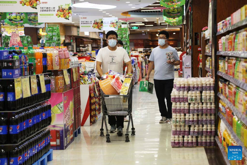 People shop in a supermarket in Dingxi, northwest China's Gansu Province, Sept. 11, 2022.