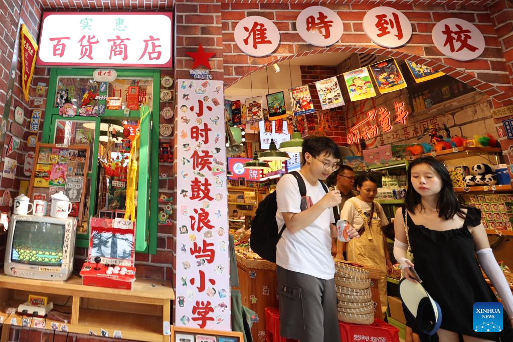 People shop in a souvenir store in Confucius Temple tourist area during the Mid-Autumn Festival holiday in Nanjing, east China's Jiangsu Province, Sept. 11, 2022.