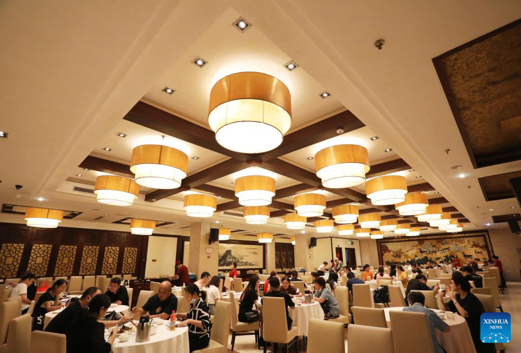 People dine in a restaurant during the Mid-Autumn Festival holiday in Nanjing, east China's Jiangsu Province, Sept. 11, 2022.