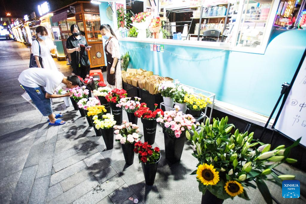 People shop for fresh-cut flowers during the Mid-Autumn Festival holiday in Nanning, south China's Guangxi Zhuang Autonomous Region, Sept. 10, 2022.
