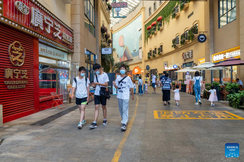 People walk along a pedestrian street during the Mid-Autumn Festival holiday in Nanjing, east China's Jiangsu Province, Sept. 11, 2022.
