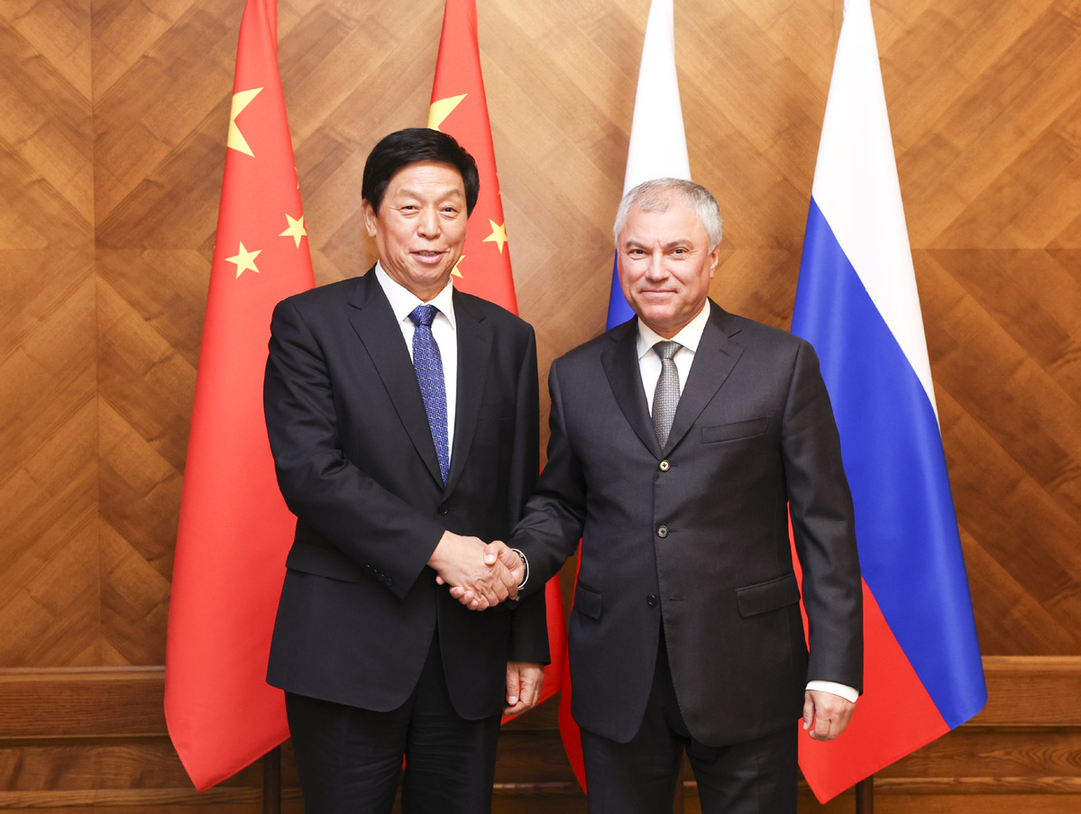 During his talks with the two Russian legislative leaders, Li said that the two sides should strengthen exchanges of experience on national governance and legislation regarding fighting against external interference, sanctions and long-arm jurisdiction, among others.