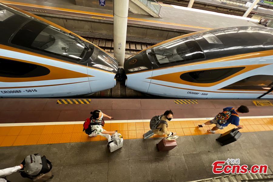 Passengers walk on the platform at a railway station in Nanjing, east China's Jiangsu Province, Sept. 12, 2022. (Photo: China News Service/Yang Bo)