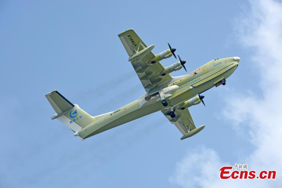 China's 2nd AG600M, a full-state, new-configuration amphibious firefighting aircraft completes its maiden test flight at Jinwan airport in Zhuhai, south China's Guangdong Province, Sept. 10, 2022. (Photo: China News Service/Gao Han)