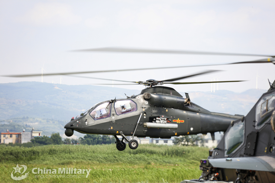 Helicopters attached to a brigade under the PLA 75th Group Army conduct flight training on August 17, 2022. Multiple types of helicopters participated in the training. (eng.chinamil.com.cn/Photo by Li Chunguo)