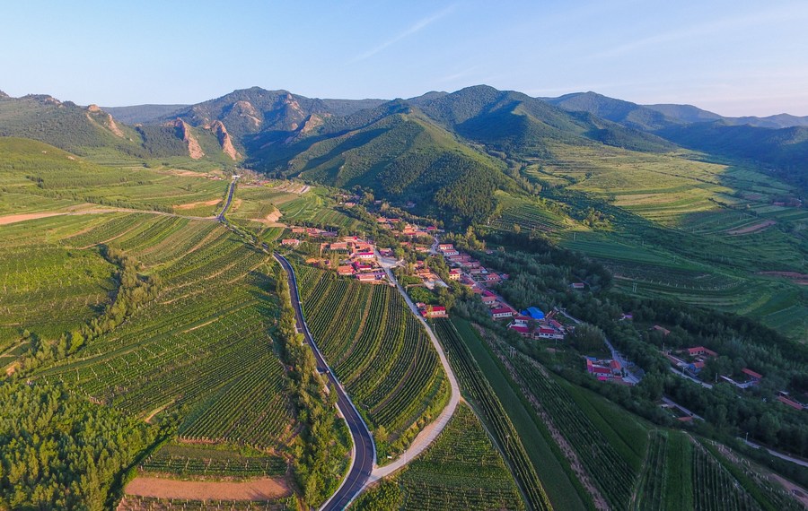 Aerial photo taken on July 15, 2019 shows the scenery of Ma'anshan Village in Chifeng City, north China's Inner Mongolia Autonomous Region. (Xinhua/Liu Lei)