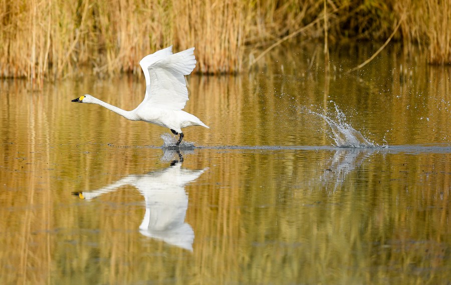 Photo taken on Oct. 28, 2020 shows a swan at the Ulan Suhai Lake in north China's Inner Mongolia Autonomous Region. (Xinhua/Lian Zhen)