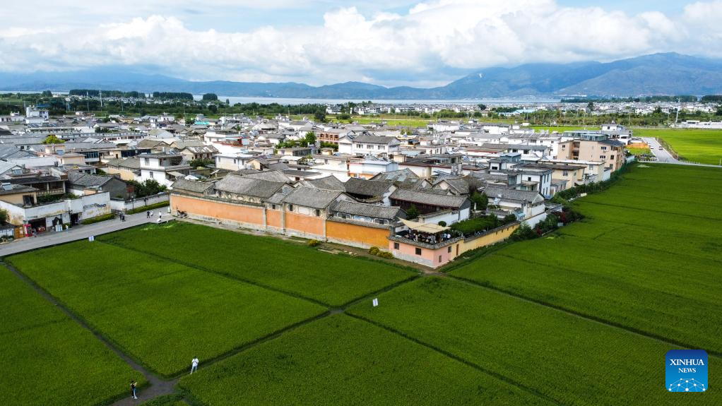 Aerial photo taken on Aug. 27, 2022 shows a view of Xizhou old town in southwest China's Yunnan Province. (Xinhua/Cao Mengyao)