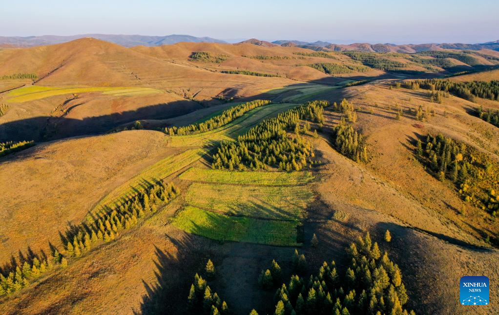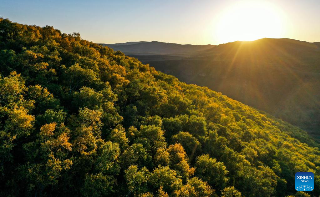 Aerial photo taken on Sept. 13, 2022 shows the autumn scenery of Daqing Mountain in Hohhot of north China's Inner Mongolia Autonomous Region. (Xinhua/Lian Zhen)