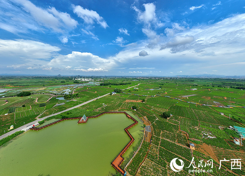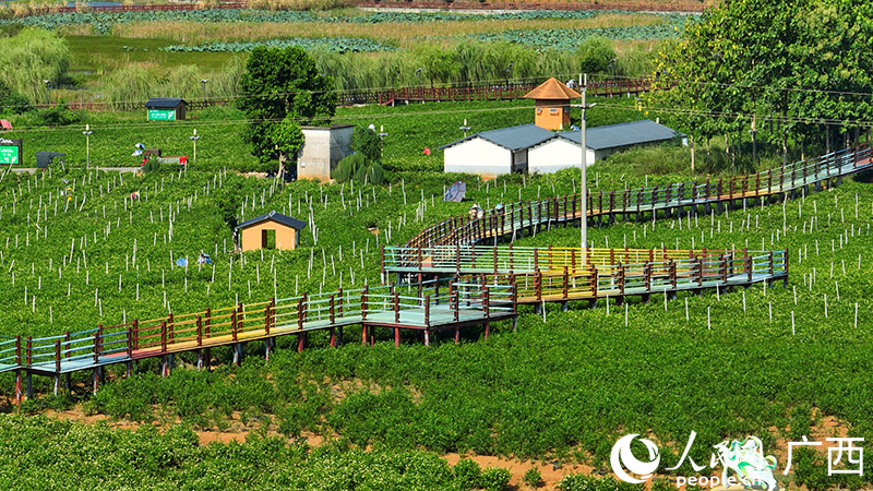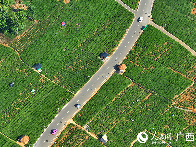 Aerial photo shows the Chinese Jasmine Garden, also a popular scenic area, located in Shijing village, Hengzhou city, south China's Guangxi Zhuang Autonomous Region. (People's Daily Online/Fu Huazhou)