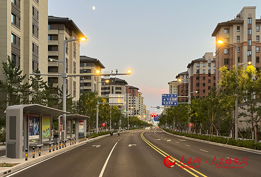 Photo shows multi-functional poles installed on a road in Rongdong district of Xiongan New Area. Rongdong district is the first district to be built in Xiongan New Area. All roads in the district have been installed with multi-functional poles, cameras, radars, 5G network, and edge nodes, among other intelligent devices, making up the longest smart roads and the largest smart road cluster in the country and providing an environment for the development of smart transport and vehicle-road collaboration. (Photo/Chen Shihao)