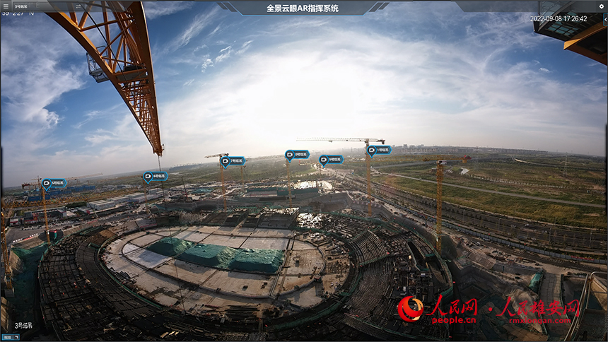 This augmented reality (AR) picture shows a panoramic view of a construction site in Xiongan New Area, north China's Hebei Province. (Photo courtesy of Beijing Urban Construction Group Co., Ltd.)