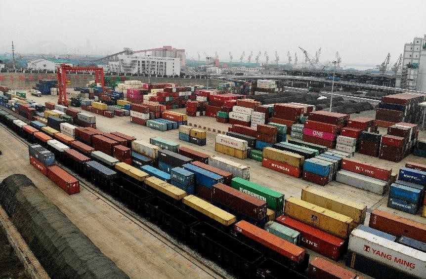 Photo shows the China-Kazakhstan International Logistics Base in the eastern Chinese port of Lianyungang, Jiangsu province. (People's Daily Online/Wang Chun)