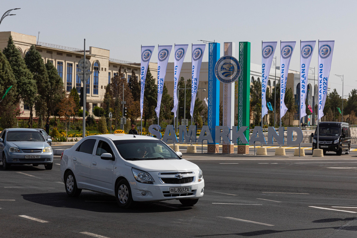 A car runs on the road in Samarkand. [Photo/Xinhua]