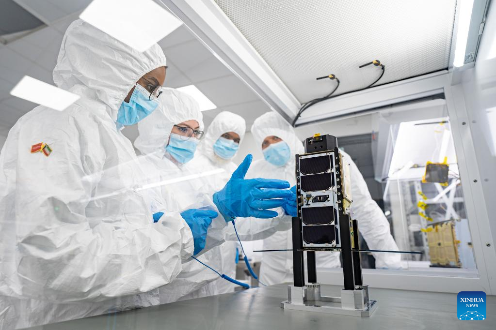 Members of Kuwait's national satellite team are seen in the final tests of KuwaitSAT1 in Capital Governorate, Kuwait, July 18, 2022. (Xinhua)