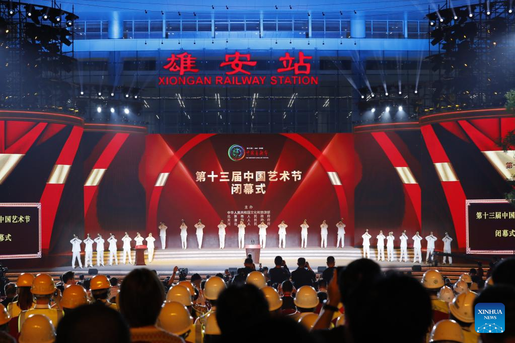 Artists perform at the closing ceremony of the 13th China Art Festival in Xiongan New Area, north China's Hebei Province, Sept. 15, 2022. (Photo by Mao Heran/Xinhua)
