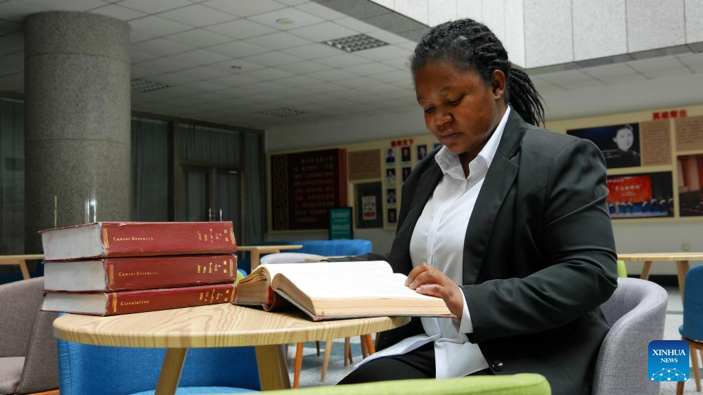 Zhang Ning reads a book at Jinzhou Medical University in Jinzhou, northeast China's Liaoning Province, Sept. 5, 2022. Donkor Adwoa Jennifer, also known by her Chinese name as Zhang Ning, comes from Ghana and has lived in China for 13 years. While in China, Zhang gained her bachelor's and post-graduate degrees in clinical medicine. Now she has become a teacher at Jinzhou Medical University in Jinzhou. In the future, Zhang Ning plans to pursue her doctoral degree and then return to Ghana to pay back to her country with the medical knowledge she has learned. (Xinhua/Yang Qing)