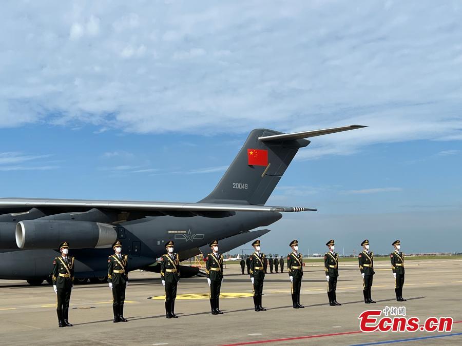 Chinese soldiers wait to receive coffins containing remains of 88 Chinese soldiers killed in the 1950-53 Korean War from South Korea during a handover ceremony held at Incheon International Airport, South Korea, Sept. 16, 2022. (Photo: China News Service/Liu Xu)