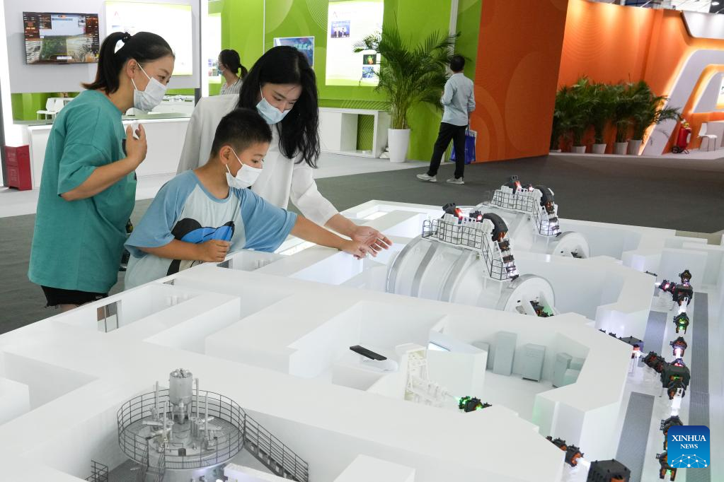 People learn about utilization of hydrogen energy at the main venue of 2022 national mass entrepreneurship and innovation week in Hefei, capital of east China's Anhui Province, Sept. 17, 2022. China holds a national mass entrepreneurship and innovation week from Sept. 15 to 21. Themed "Innovation drives vitality, entrepreneurship creates employment," the annual event, whose main venue is set in Hefei this year, is expected to see the launch of nearly 1,000 activities across the country, both online and offline. (Xinhua/Du Yu)
