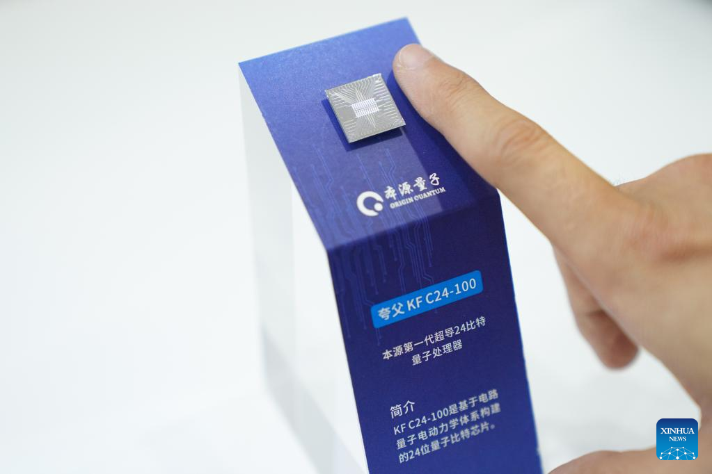 Photo taken on Sept. 17, 2022 shows a quantum processor displayed at the main venue of 2022 national mass entrepreneurship and innovation week in Hefei, capital of east China's Anhui Province. China holds a national mass entrepreneurship and innovation week from Sept. 15 to 21. Themed "Innovation drives vitality, entrepreneurship creates employment," the annual event, whose main venue is set in Hefei this year, is expected to see the launch of nearly 1,000 activities across the country, both online and offline. (Xinhua/Du Yu)