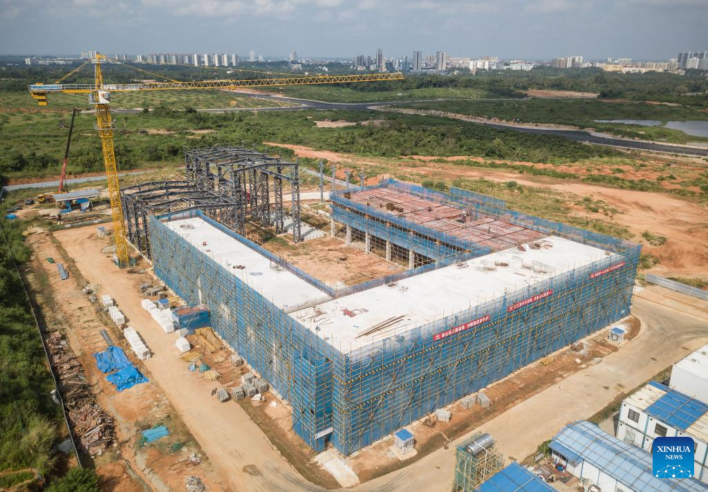 Aerial photo taken on Sept. 18, 2022 shows a satellite operation center under construction at the Wenchang International Aerospace City in Wenchang, south China's Hainan Province. Focusing on the development of aerospace science and technology, the Wenchang International Aerospace City, one of the key industrial parks of Hainan free trade port, is undergoing construction in an orderly manner. (Xinhua/Pu Xiaoxu)