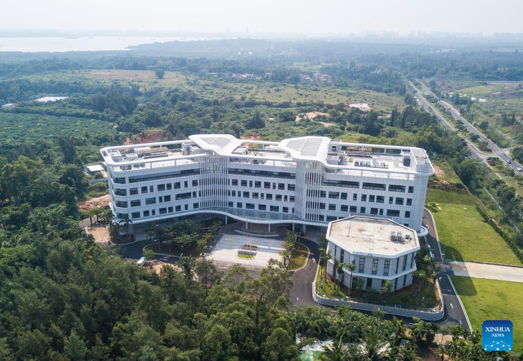 Aerial photo taken on Sept. 15, 2022 shows an industrial service center, which has been completed and put into operation, at the Wenchang International Aerospace City in Wenchang, south China's Hainan Province. Focusing on the development of aerospace science and technology, the Wenchang International Aerospace City, one of the key industrial parks of Hainan free trade port, is undergoing construction in an orderly manner. (Xinhua/Pu Xiaoxu)
